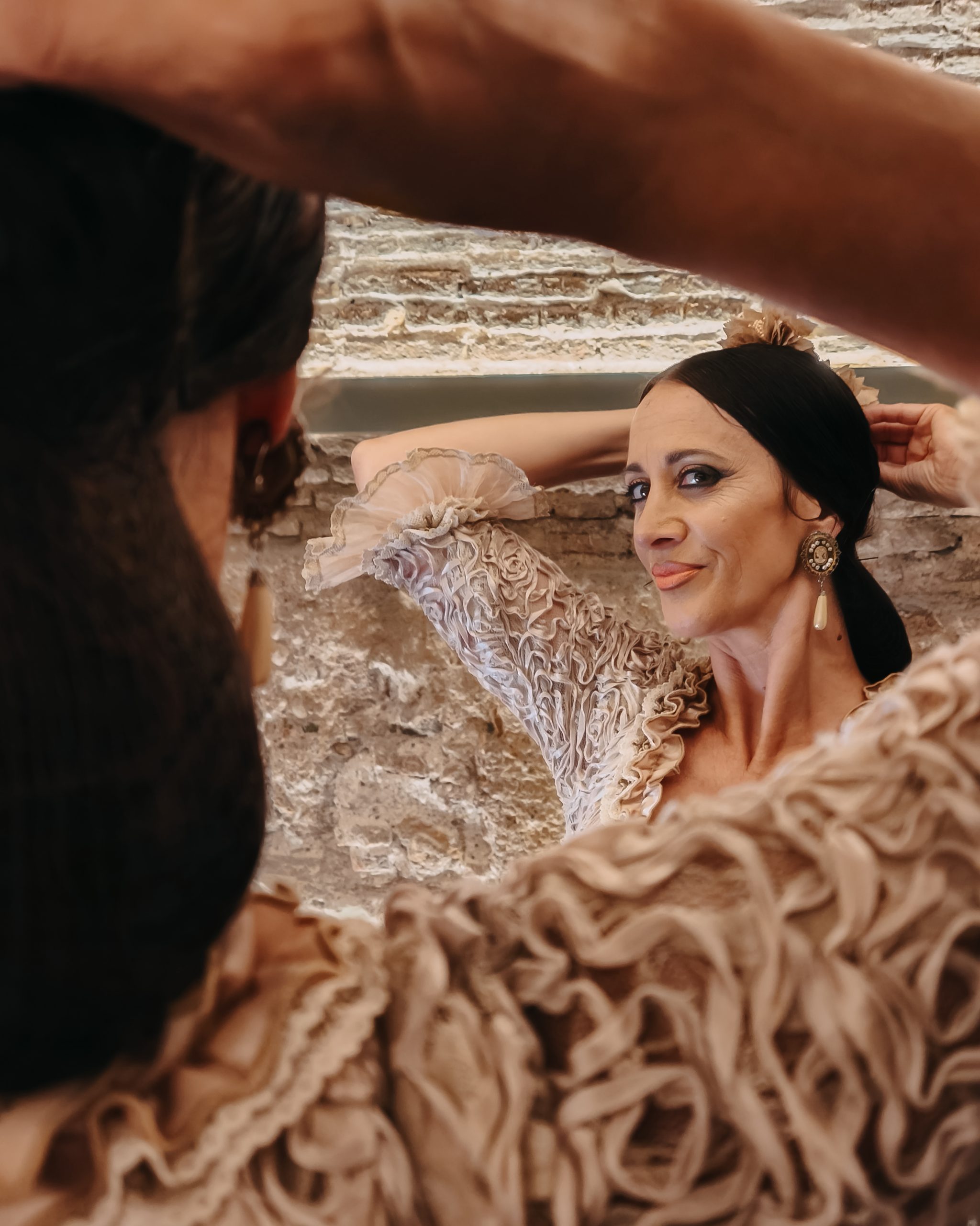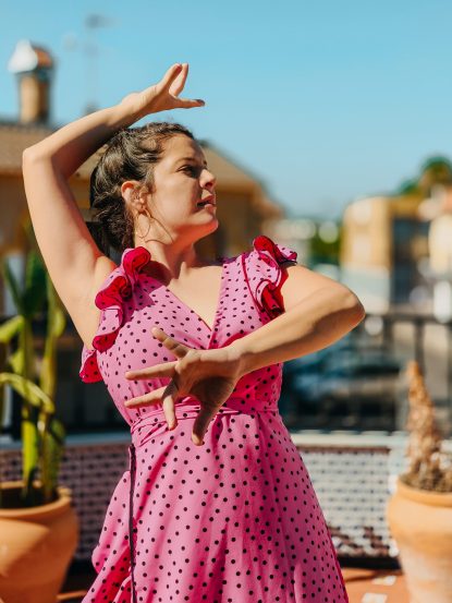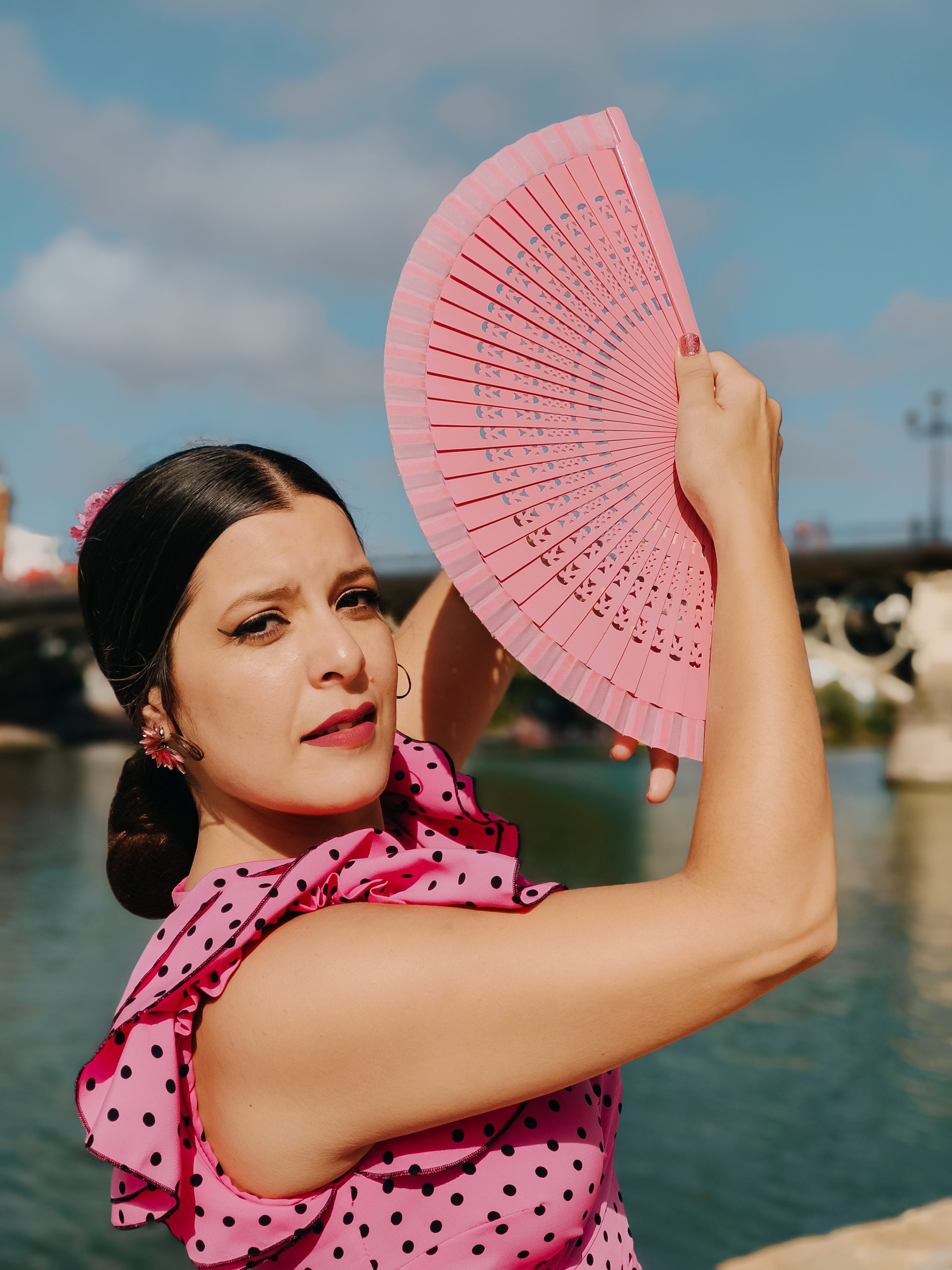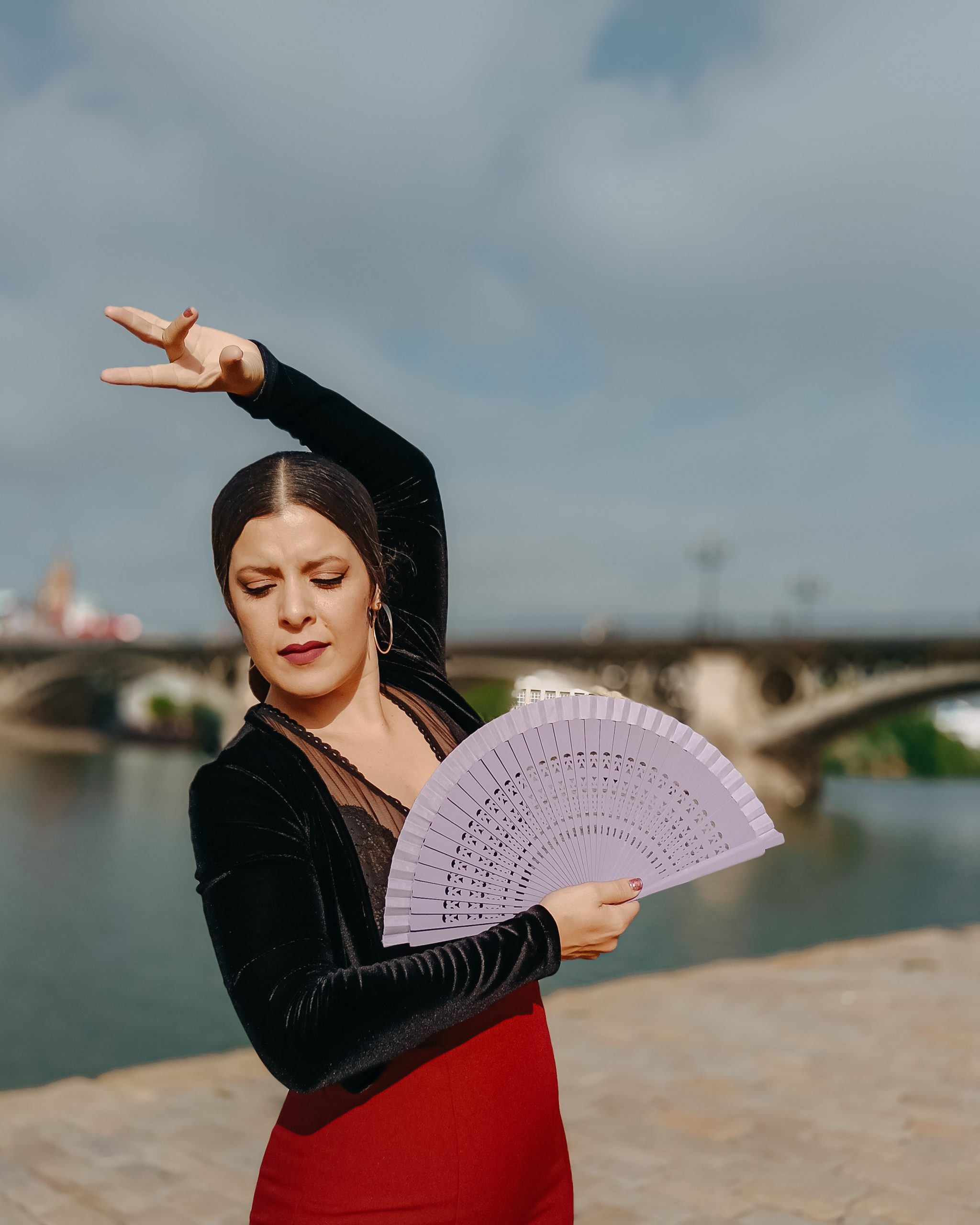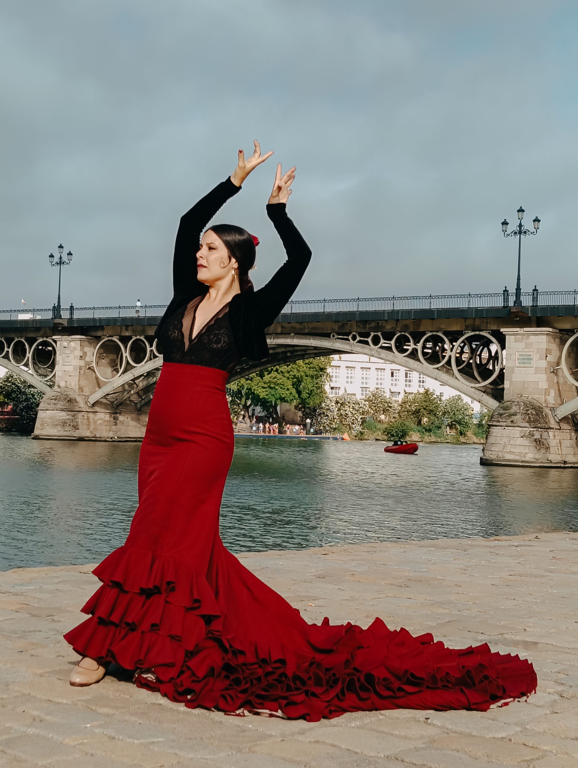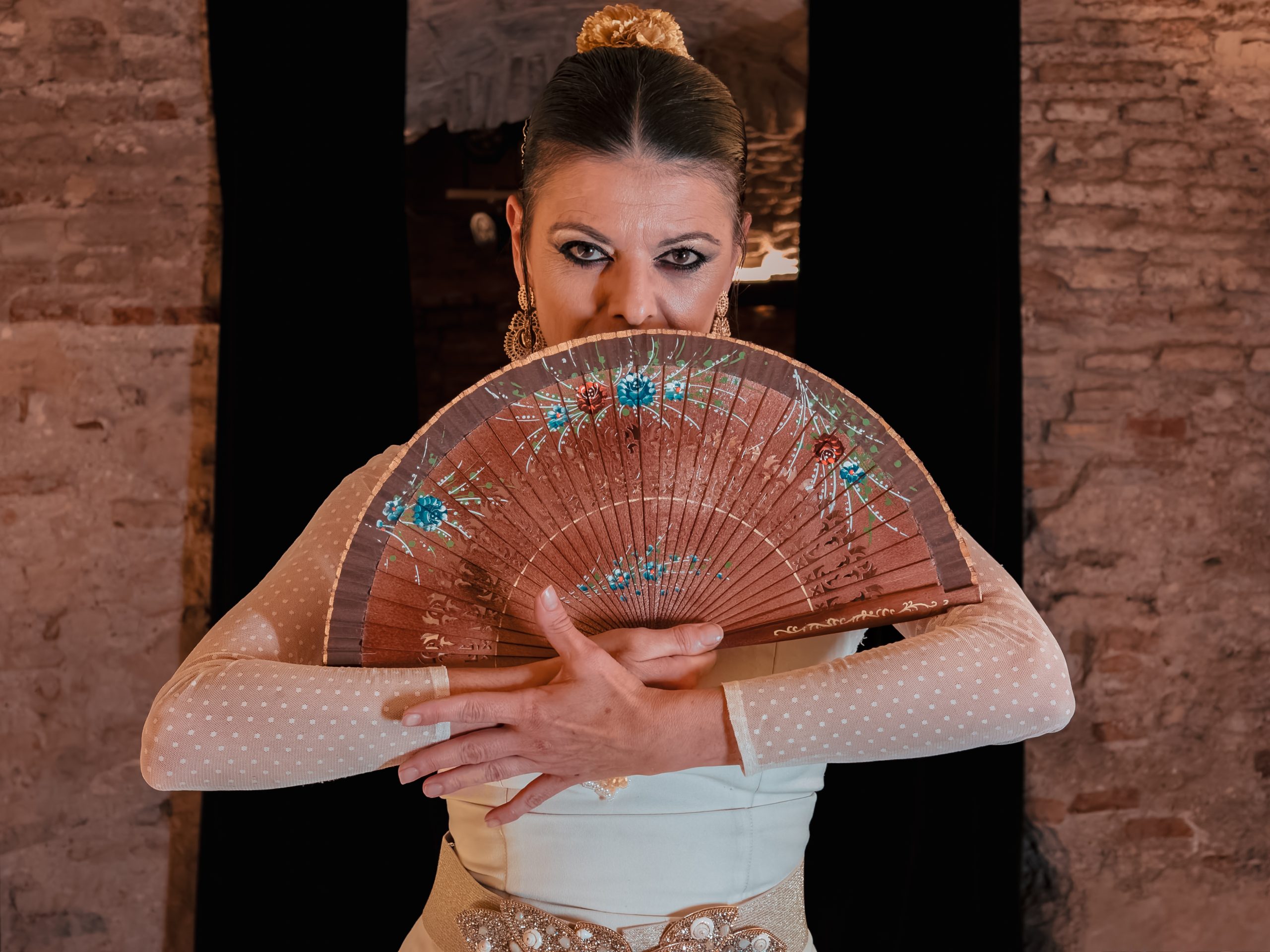Growing up, Laura danced different genres before trying flamenco at fifteen. The combination of percussion, dance, and live music deeply impressed her, and her passion for flamenco brought her to Seville. Before earning her place as a performer in a local tablao, she practised everyday at flamenco schools and busked on the streets.