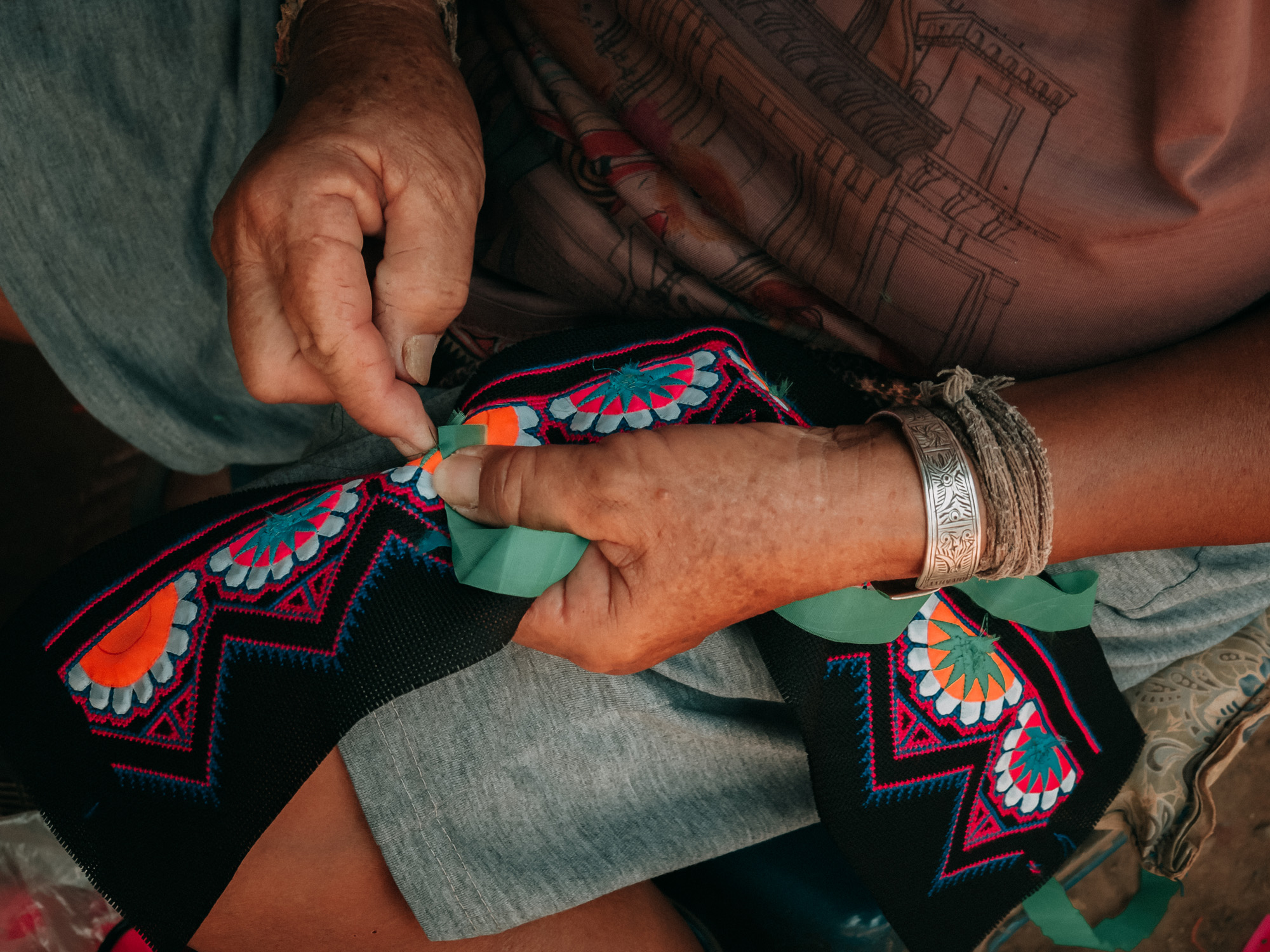 A Lahu tribeswoman and her handicrafts. Shot on OPPO