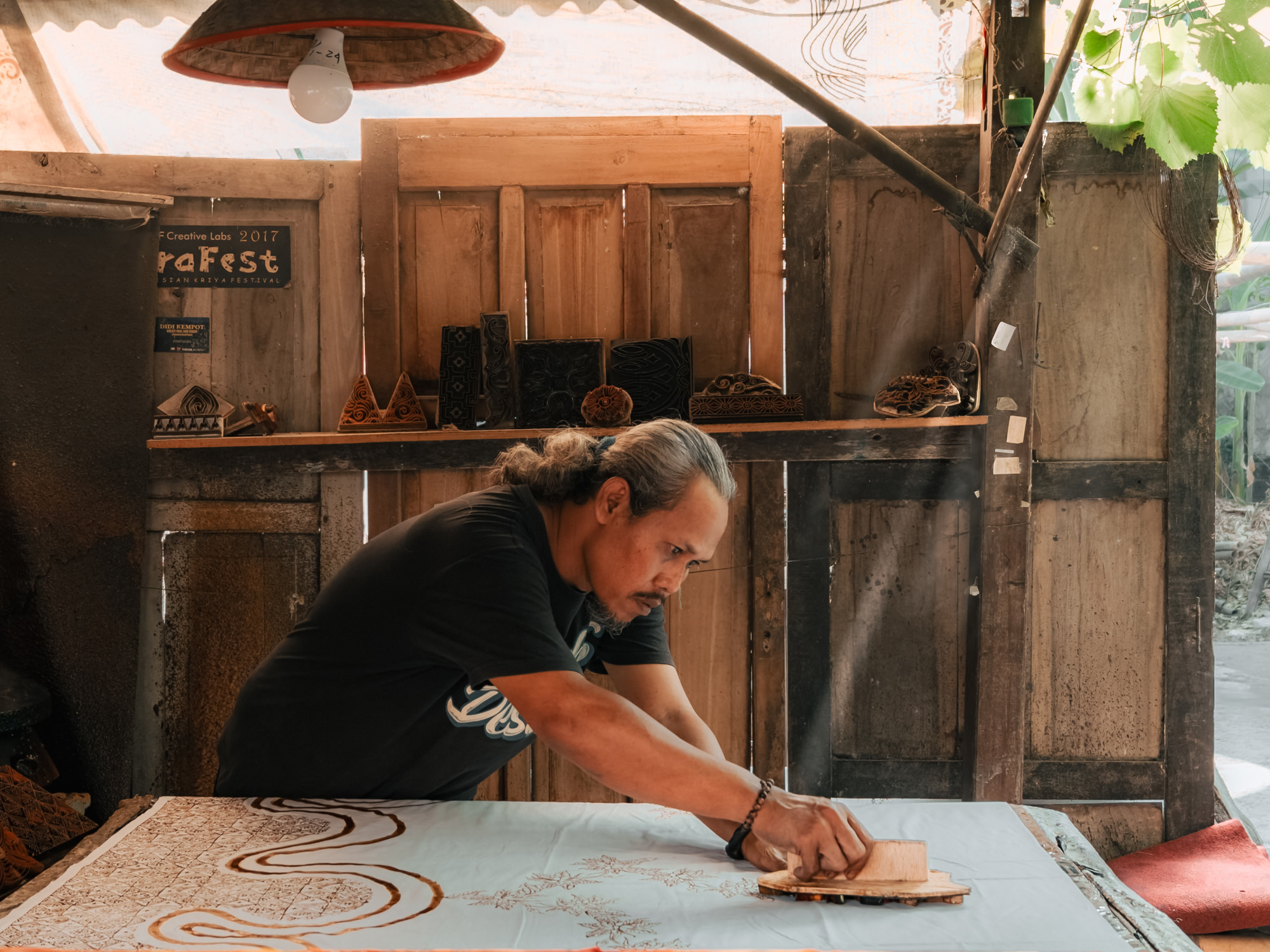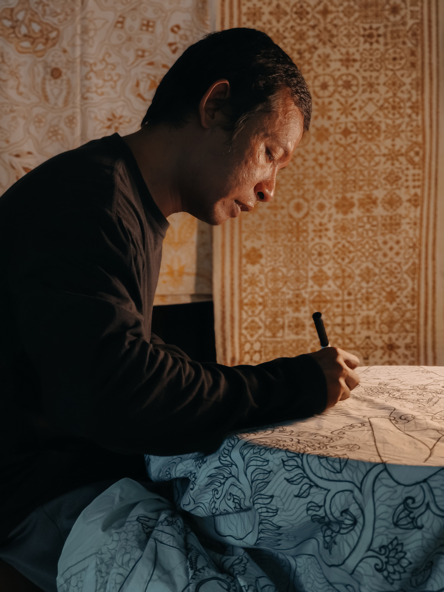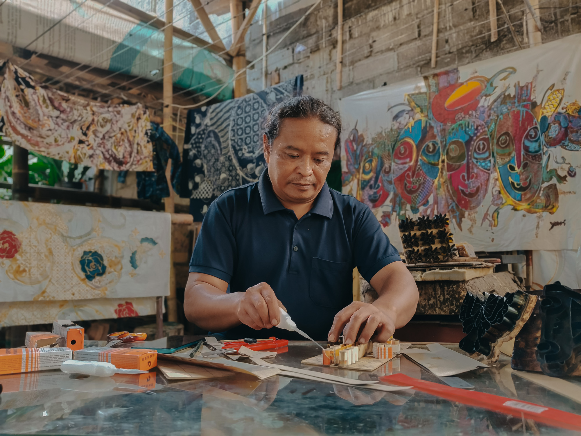 Sang Made works on an intricate batik design. Shot on OPPO Reno12 Pro