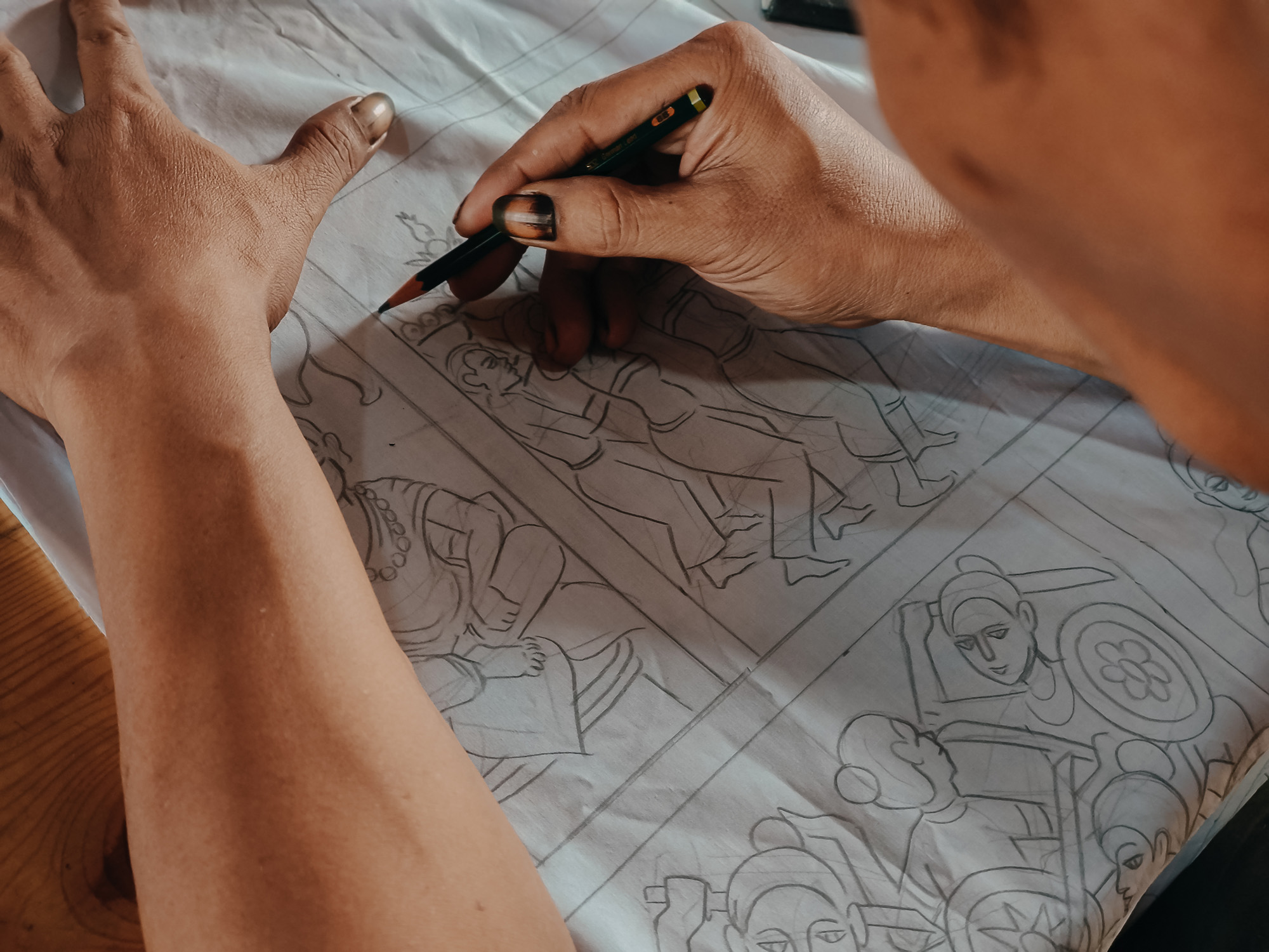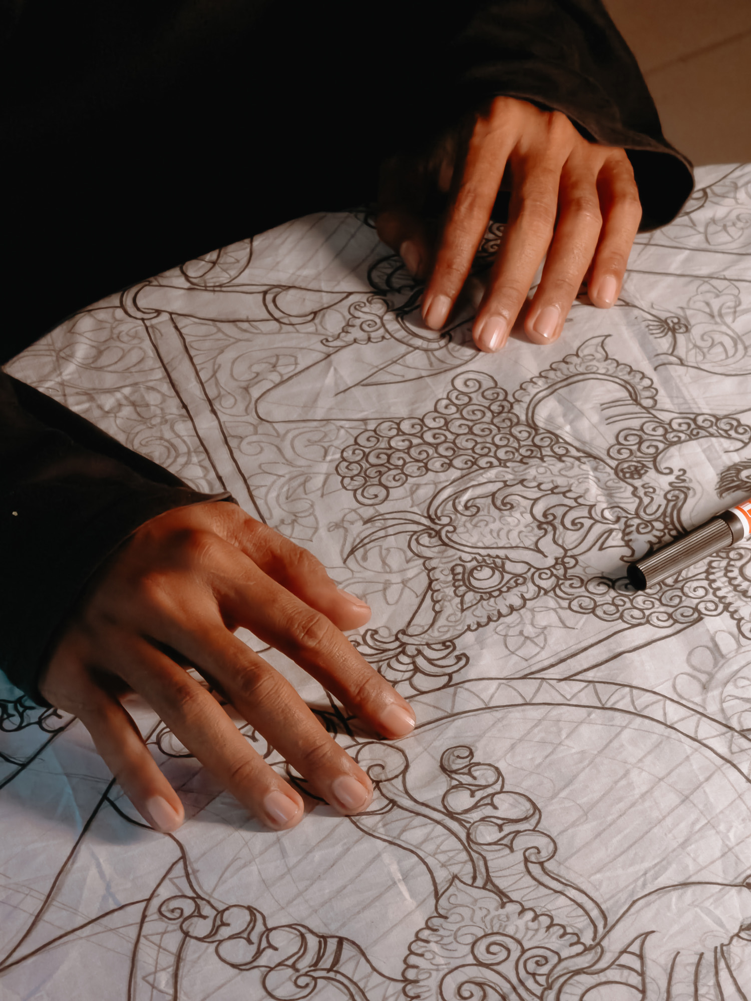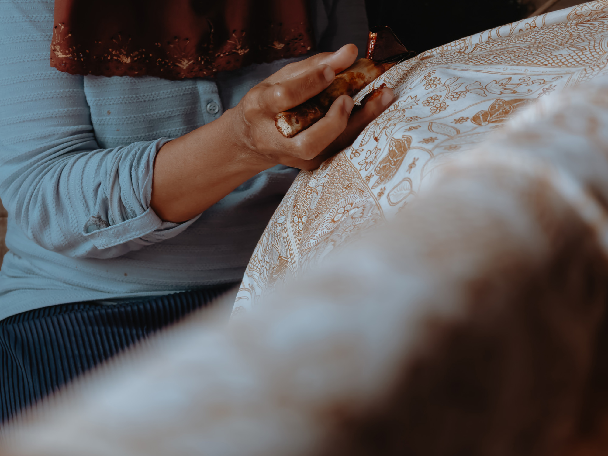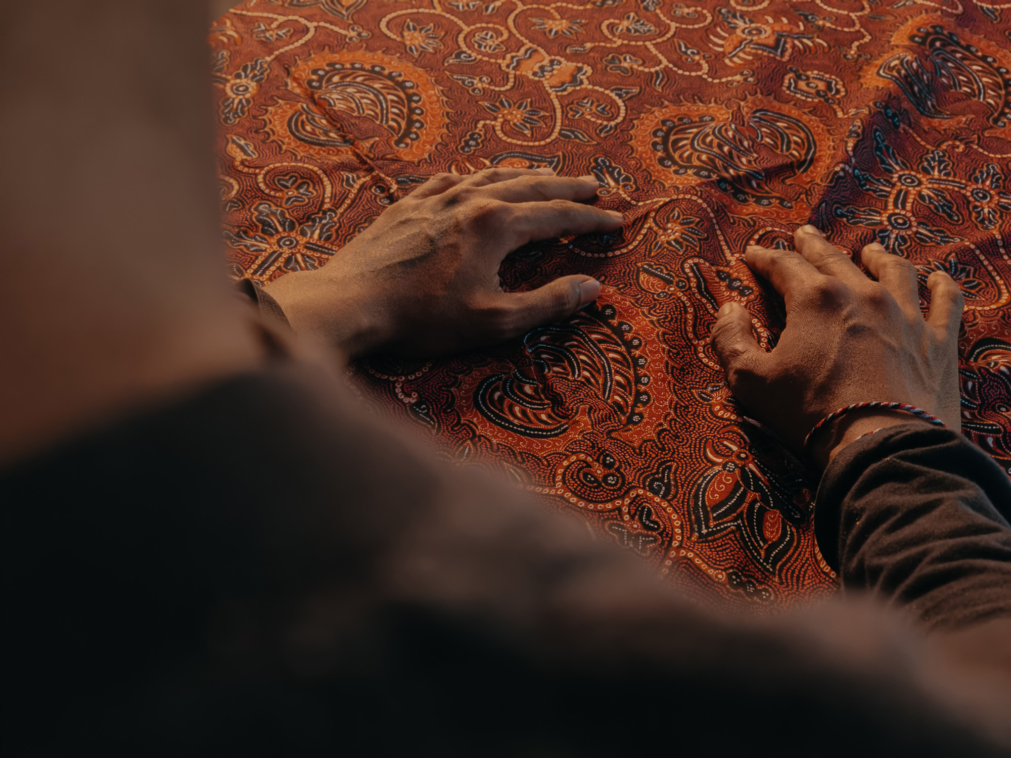 Sang Made works on an intricate batik design. Shot on OPPO Reno12 Pro