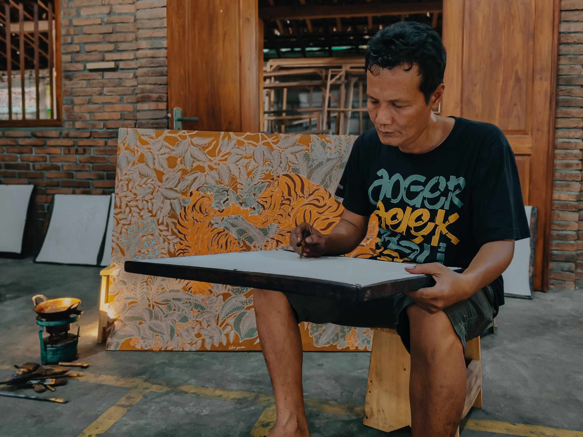 Batik may be an ancient art form, but new stories are being written on its canvas. Tatang Elmy Wibowo uses his batik to raise awareness on present-day issues in Indonesia, from endangered orangutans in Borneo to illegal mining. By blending traditional Javanese motifs with contemporary art, he crafts a unique style that bridges the old and new.