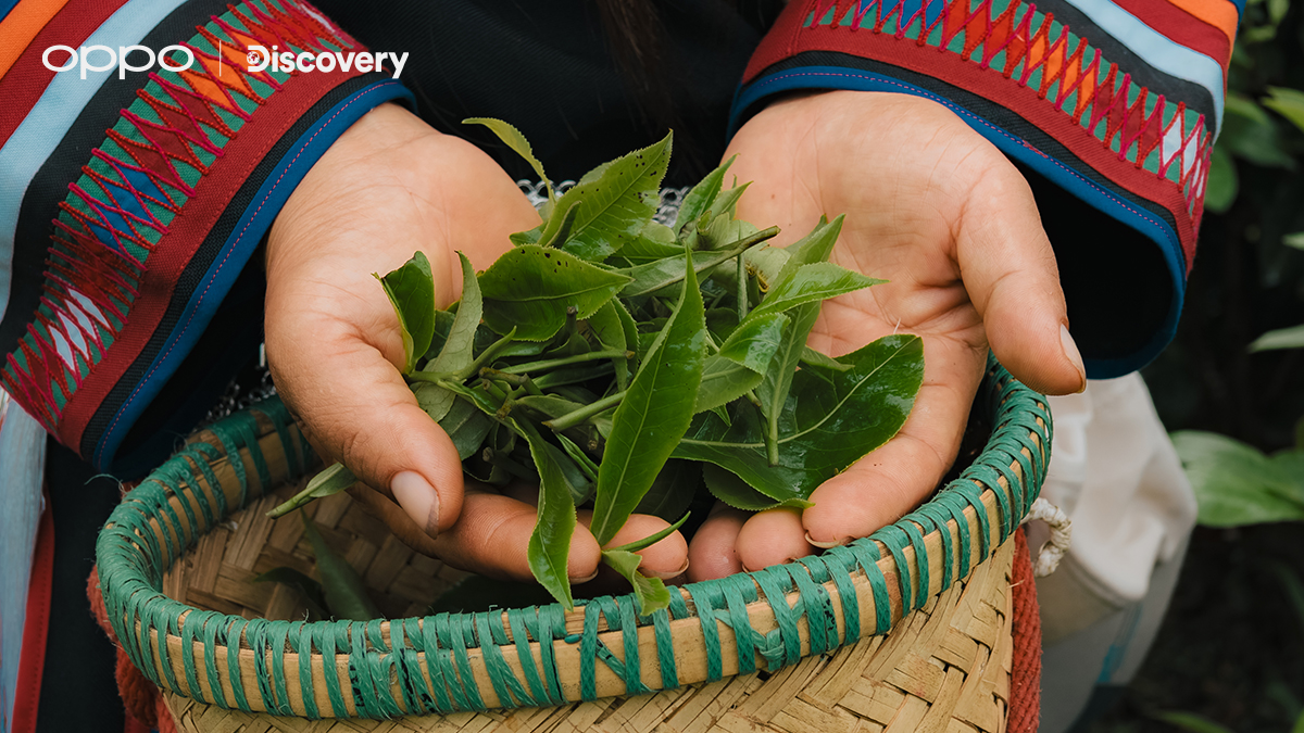 Fresh tea leaves, picked by a tribeswoman. Shot on OPPO
